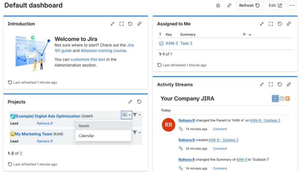 لوحة المعلومات في تاسك براوز (بديل لـ Jira)